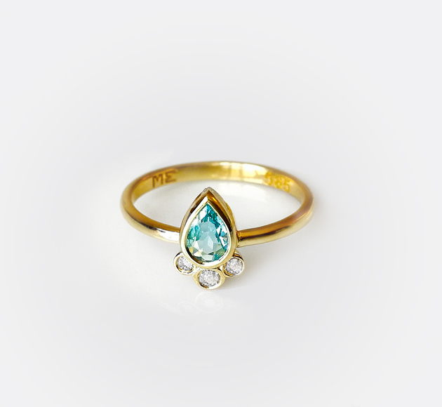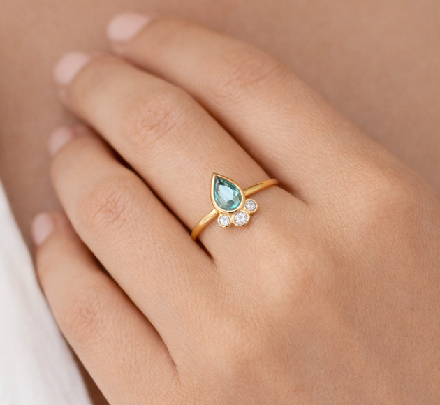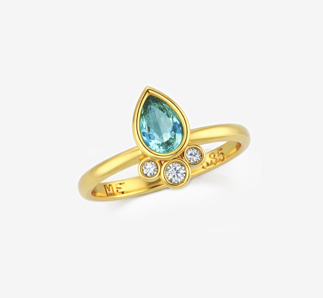 טבעת אקווה מרין צורת טיפה ויהלומים | מ.אלקיים